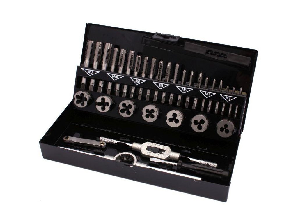 Sada obsahuje závitníky a závitové očká v rôznych veľkostiach, ktoré umožňujú vytvárať vnútorné a vonkajšie závity. Každý závitník a závitové očko je vyrobené z nástrojovej ocele, čo zabezpečuje ich vysokú odolnosť a dlhodobé používanie. Celé je to zabalené v kovovom kufríku, čo uľahčuje prepravu a skladovanie náradia. Využitie nájde v strojárskych a zámočníckych dielňach, ako aj v hobby aplikáciách a domácich kutiloch. Obzvlášť užitočné pre profesionálnych kovoobrábačov a domácich majstrov.