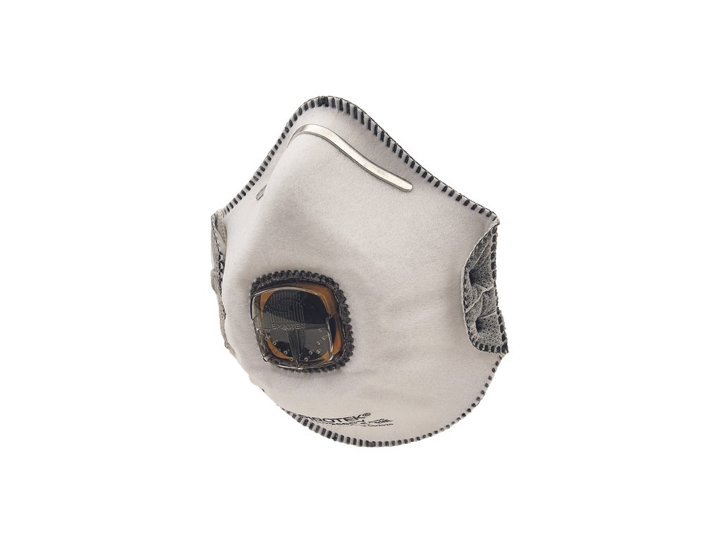 Respirátor s ventilom TyphoonTM a vrstvou aktívneho uhlia proti netoxickým pevným časticiam a kvapalným aerosólom v koncentráciách do 12x NPK/PEL, ochrana proti organickým parám pod NKP. EN149:2001+A12009, GOCT P 12.4.191-99, TP TC 019/2011
