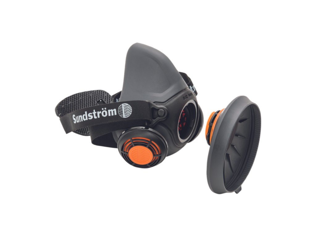 skvelo sediaca polomaska s vysokou úrovňou ochrany a vysokým komfortom dýchania pri použití v najnáročnejšom pracovnom prostredí; polomaska SR 900 je vyrobená z termoplastického elastomeru (TPE) a polypropylénu (PP); maska je vybavená dvomi výdychovými ventilmi, ktoré kladú veľmi nízky odpor pri výdychu