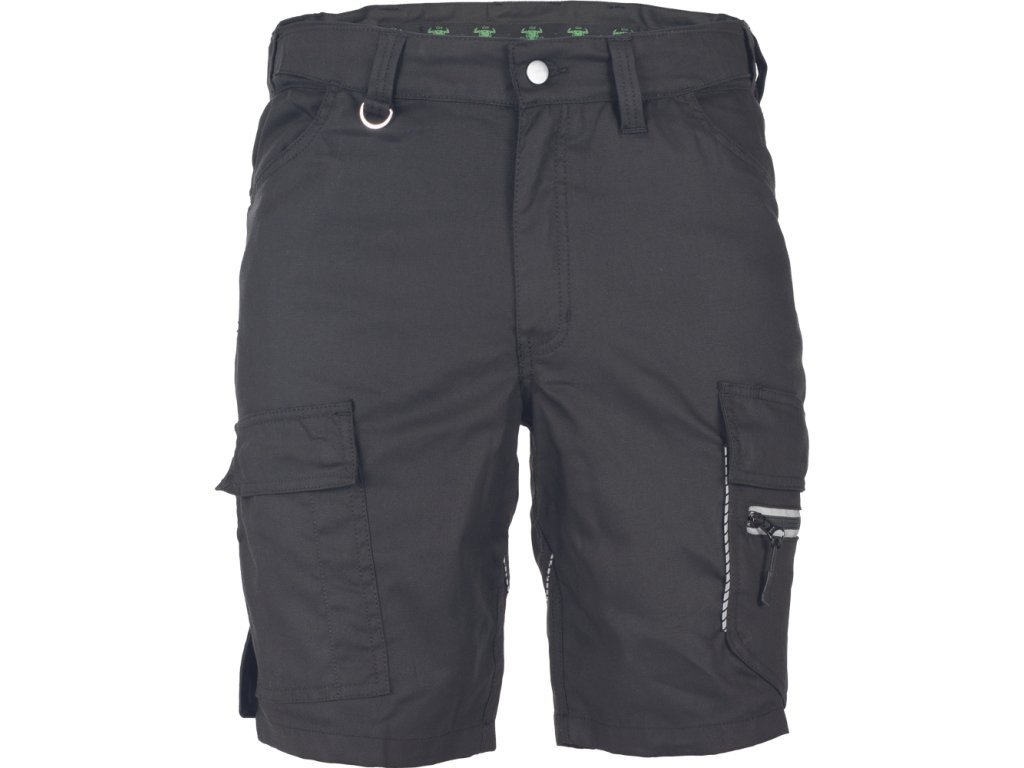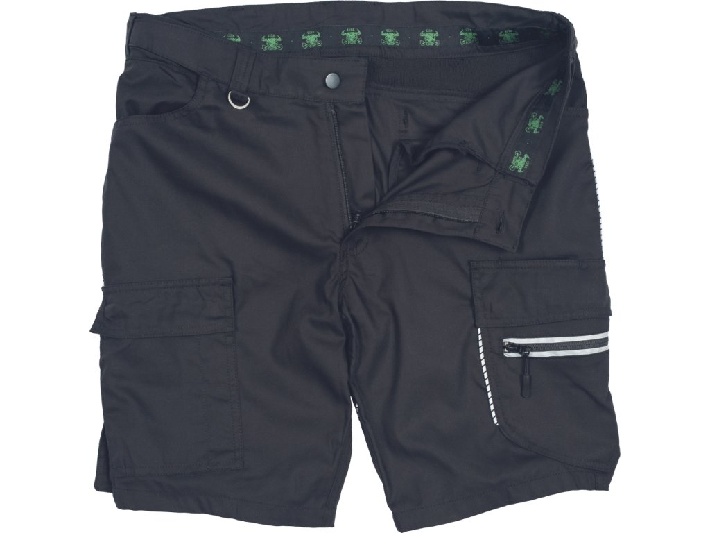• moderné pánske šortky s elastickým pásom • strečové vloženie v páse zadného dielu a rozkroku • 2 vkladané bočné vrecká • 2 stehenné vrecká s chlopňou a zapínaním na cvoky • 2 zadné vrecká • 2 kovové "D" krúžky v páse • reflexné paspulky pre lepšiu viditeľnosť