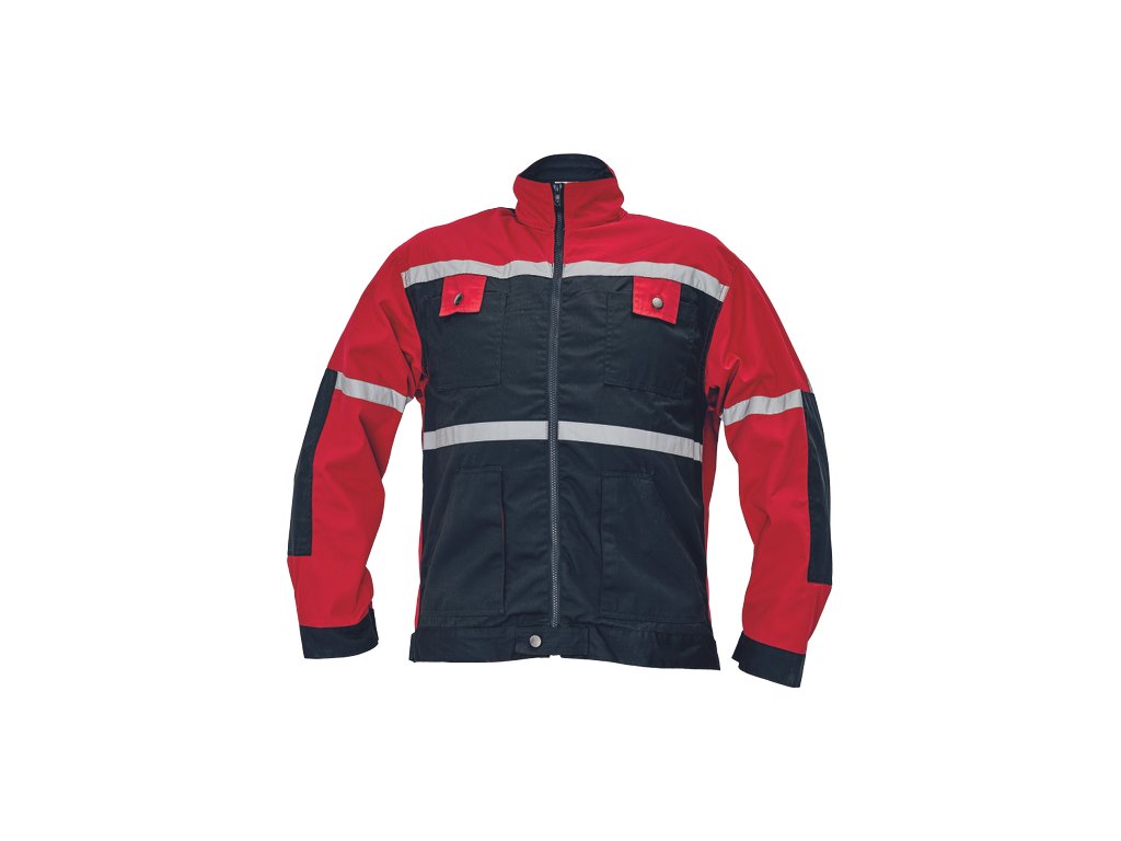 • olejuvzdorná a vode odolná impregnácia • stojacikový golier • zapínanie na zips a kovový gombík • zosilnené lakte na rukávoch, manžeta s gombíkom • 2 našité náprsné vrecká s úzkymi chlopnami a kovový gombík • vzadu stahovací opasok • reflexné doplnky-2 ,5 cm široké pásy
