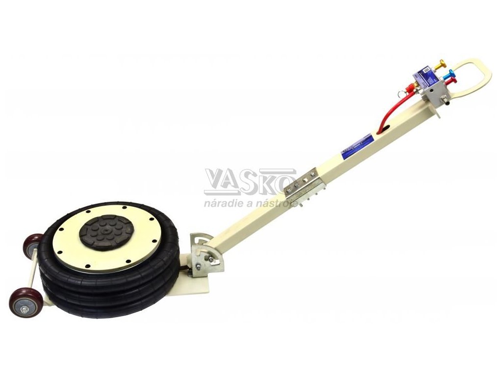 Zdvihák pneumatický vankúšový s maximálnou nosnosťou 6000 kg. Dve kolesá a zakrivená rukoväť umožňujú jednoduchú a rýchlu prepravu. Vankúšik zdviháku je vyrobený z vystuženej gumy. Gumová podložka v hornej časti výťahu zabraňuje pohybu zdvíhania bremena.