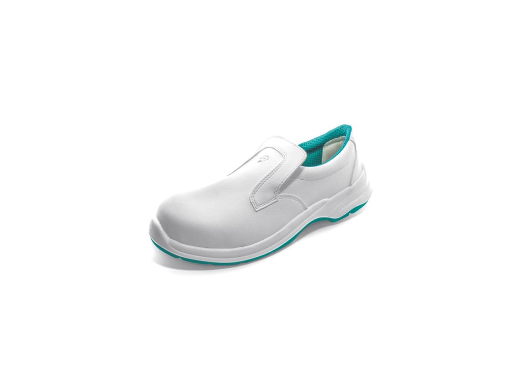 Bezpečnostné mokasíny s nekovovou tužinkou, PU podošvou rezistentnou voči olejom s lepšími protišmykovými parametrami, absorpciou energie v päte, zvrškom z mikrovlákna a podšívkou s antibakteriálnou úpravou SANITIZED.