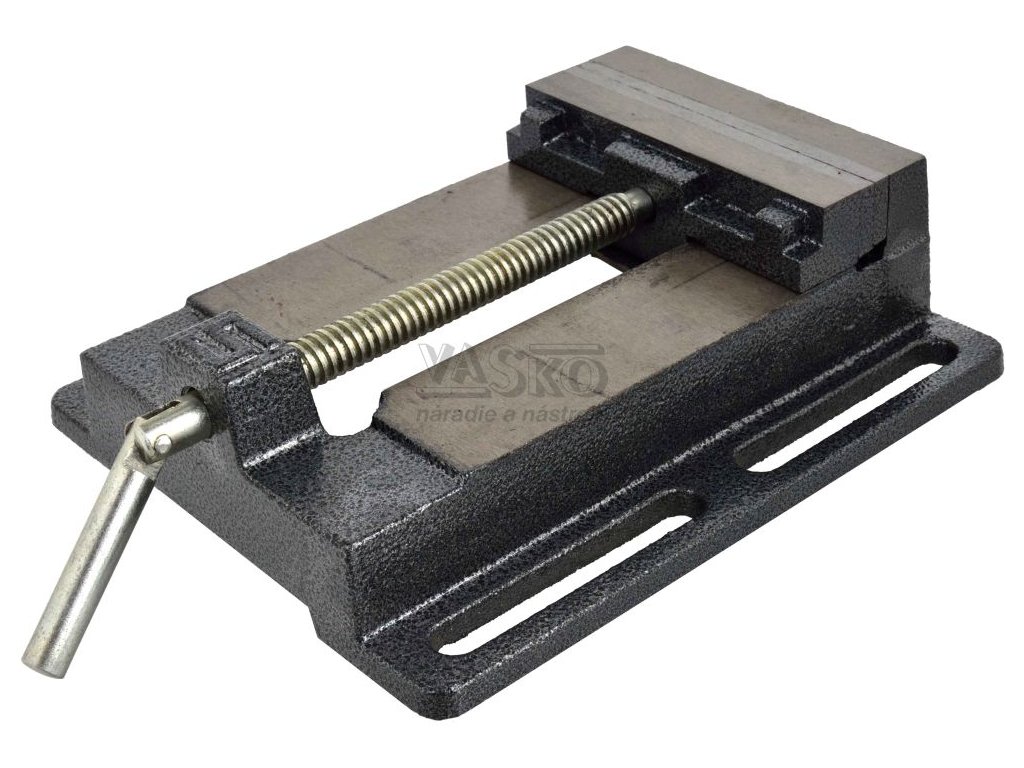 Strojný zverák s drážkovanou základňou pre jednoduchú montáž a umiestnenie zveráka. Vyrobené z liatej ocele s odolnými oceľovými čeľusťami s priečnymi drážkami pre lepšie uchopenie obrábaného predmetu.